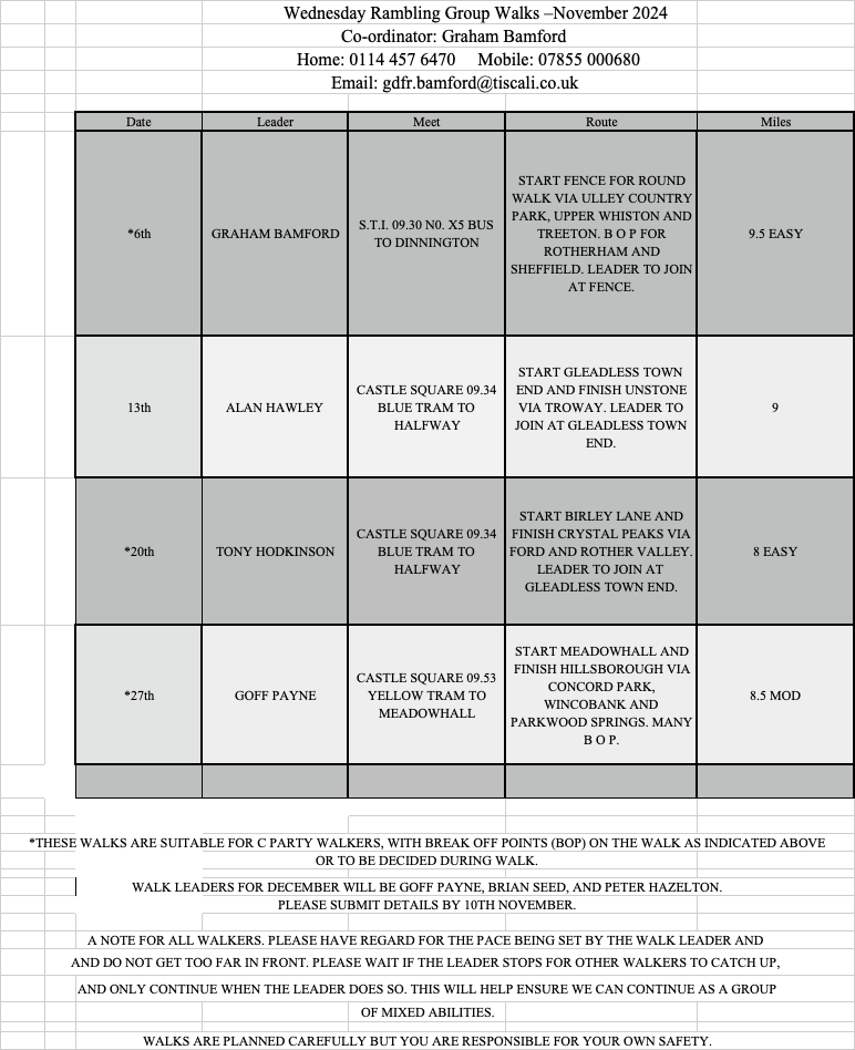 Wednesday Rambling Group for Men, Sheffield – Walks for November 2024 Posted bybolehillbill20th Oct 202411th Mar 2026Posted inUncategorized Share this: Share on X (Opens in new window) X Share on Facebook (Opens in new window) Facebook Like Loading... Related