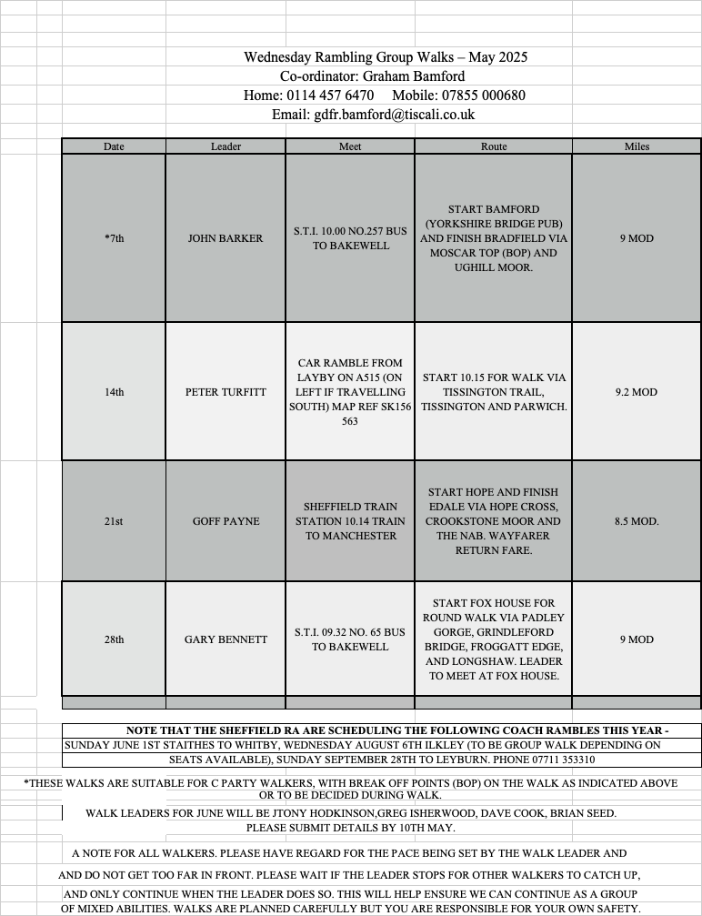 Wednesday Walking Group for Men, Sheffield – Walks for May 2025 Posted bybolehillbill18th Apr 2025Posted inUncategorized Share this: Click to share on X (Opens in new window) X Click to share on Facebook (Opens in new window) Facebook Like Loading... Related