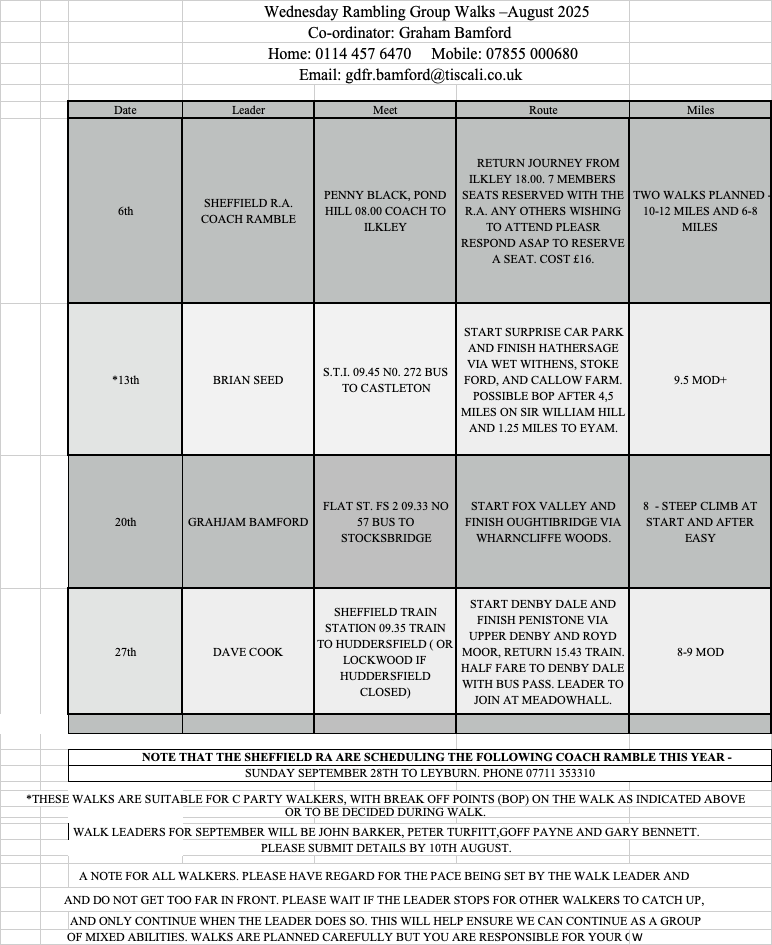 Wednesday Walking Group for Men, Sheffield – Walks for August 2025 Posted bybolehillbill15th Jul 2025Posted inUncategorized Share this: Click to share on X (Opens in new window) X Click to share on Facebook (Opens in new window) Facebook Like Loading... Related