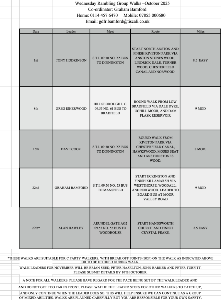 Wednesday Walking Group for Men, Sheffield – Walks for October 2025 Posted bybolehillbill14th Sep 2025Posted inUncategorized Share this: Click to share on X (Opens in new window) X Click to share on Facebook (Opens in new window) Facebook Like Loading... Related